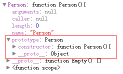 根据上图可以看出Person对象会自动获得prototyp属性,而prototype也是一个对象,会自动获得一个constructor属性,该属性正是指向Person对象。